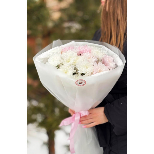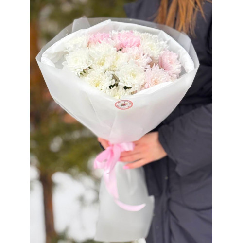 Букет из нежных хризантем в упаковке